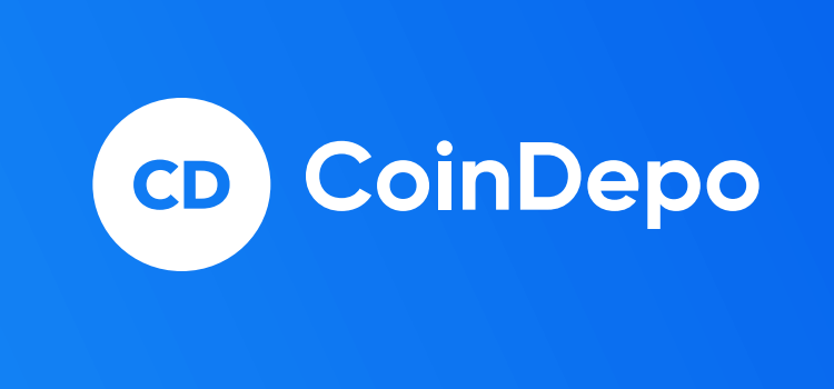 The CoinDepo logo featuring a white circle with 'CD' text on a solid blue background, accompanied by the 'CoinDepo' name in white text to the right.